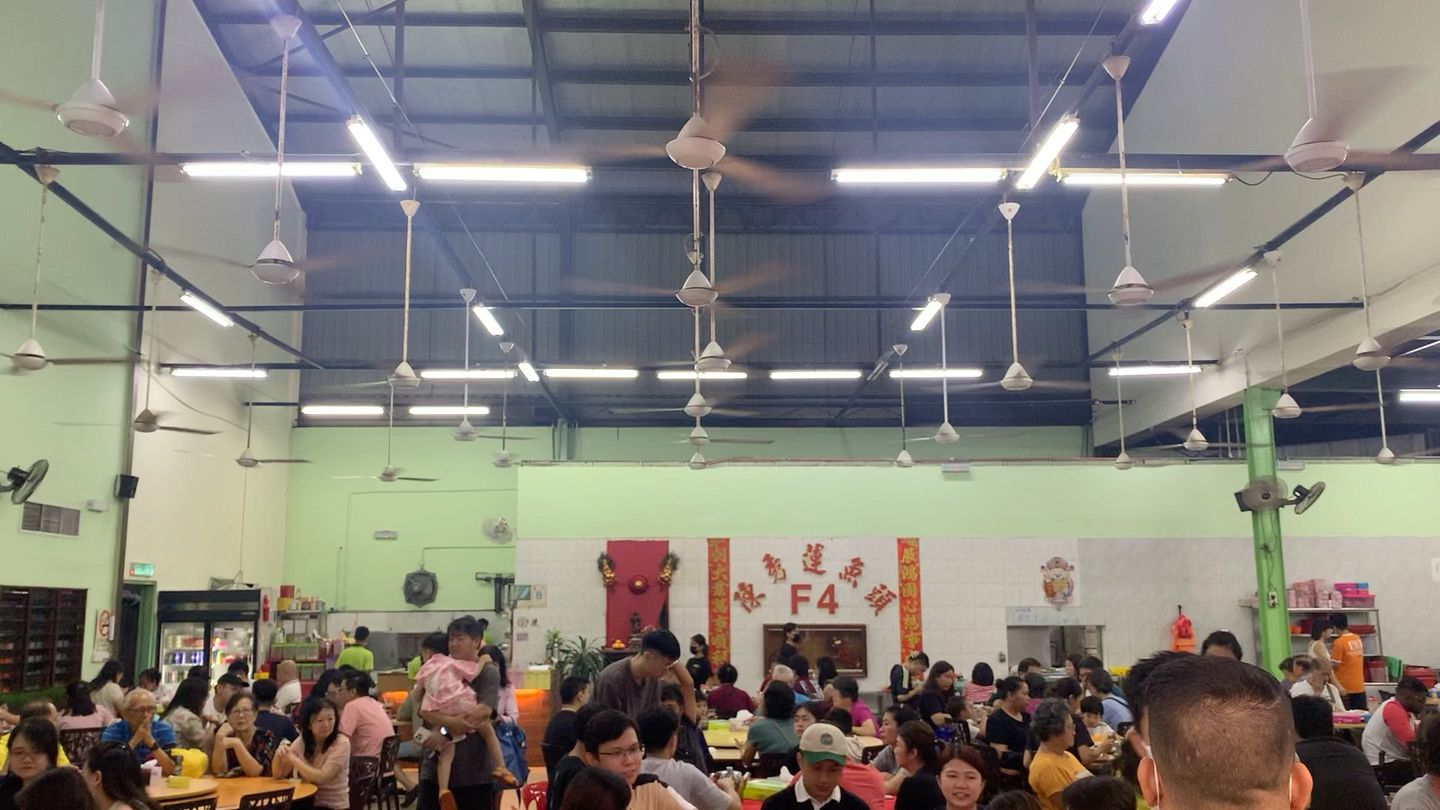 That evening, my friends Vinna and Chris, their parents, Shane, Ghost and I dined at a big restaurant housed at the bottom of a 3-story industrial building hidden down an alley. The Malaysian-Chinese uncle who told us about it said it was a local spot only known by the neighbours. However, this didn’t seem to have stopped people from discovering and packing it out. Here, too, the ceiling was lined with rows and rows of light tubes and big spinning fans, which only intensified as darkness set in outside. It felt like we were eating in a time capsule.