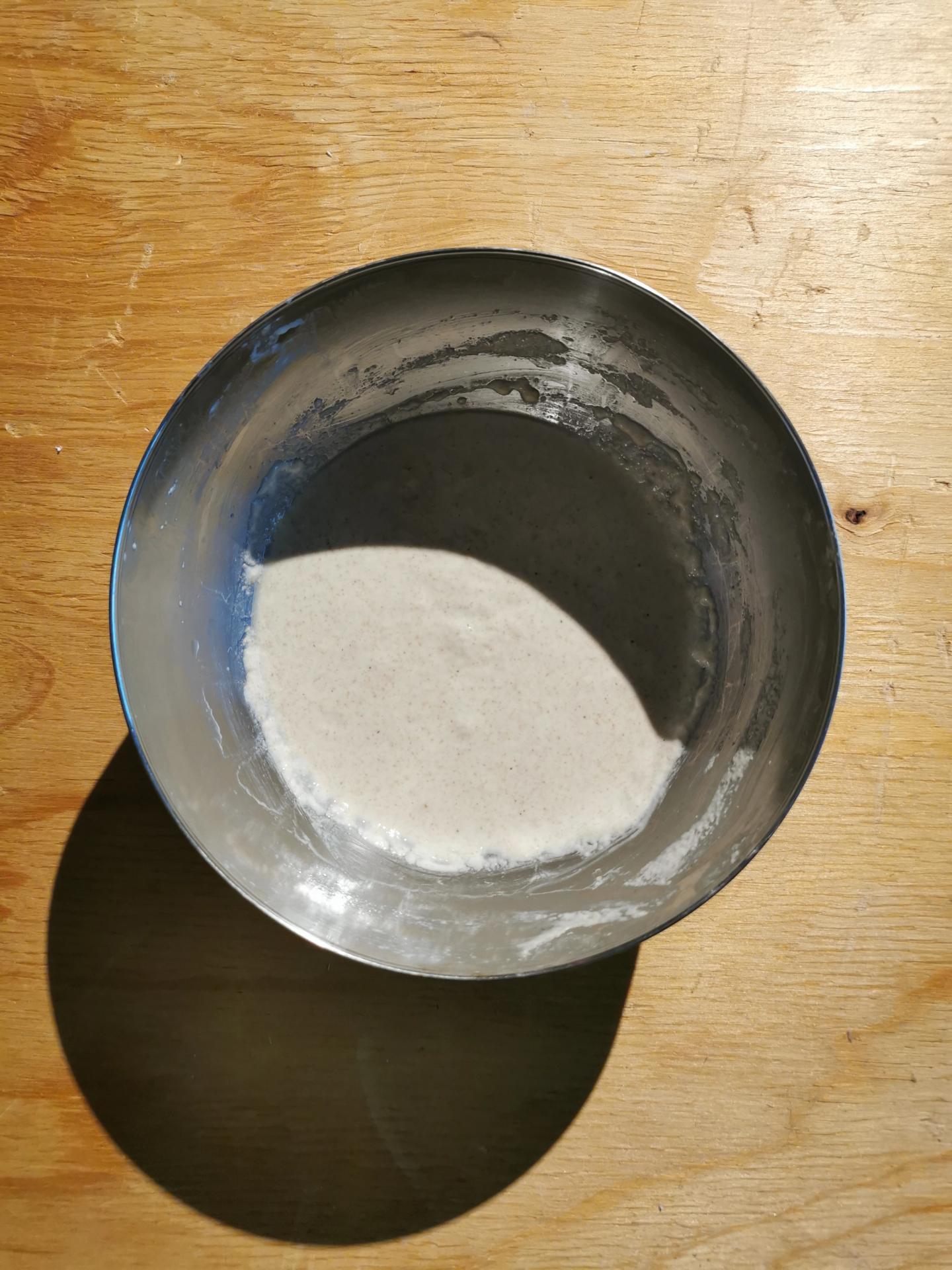Alongside the programming, we decided to improvise a little activation ritual right after our first dinner. Before leaving the huge tables where we ate, discussed, chilled, and fermented, we decided to activate the sourdough starter I brought. There was a huge bowl with some water through which we passed our hands, together with the test tube filled with my sleeping powder. For the first round, each of us took a pinch of it and spilt it in the bowl. The white grains slowly sank into the water. In the second round, each of us dipped our hands in and gently dissolved the starter into the water. After this, I gave my final touch, and we left the bowl resting on the table overnight before going to bed.