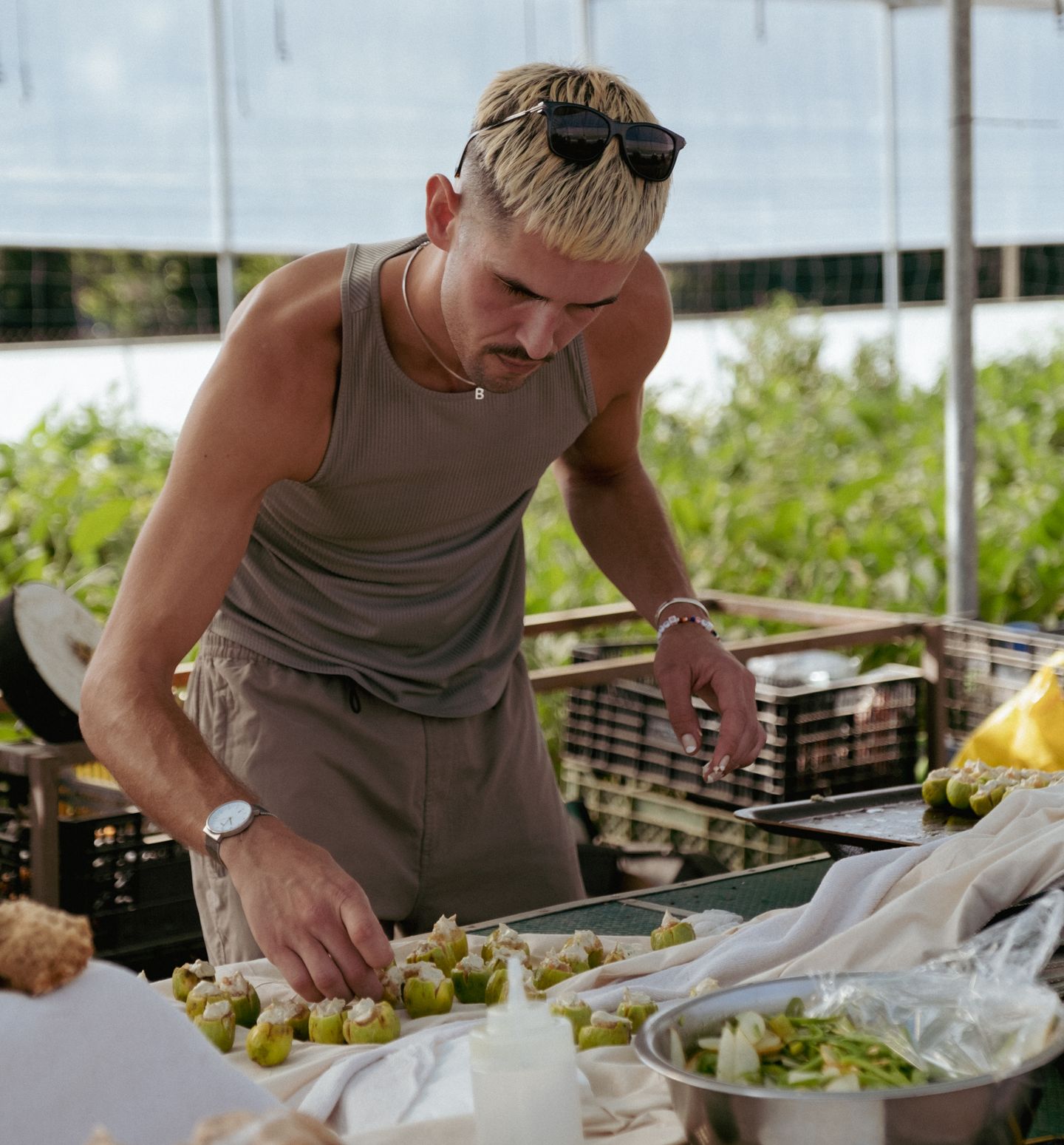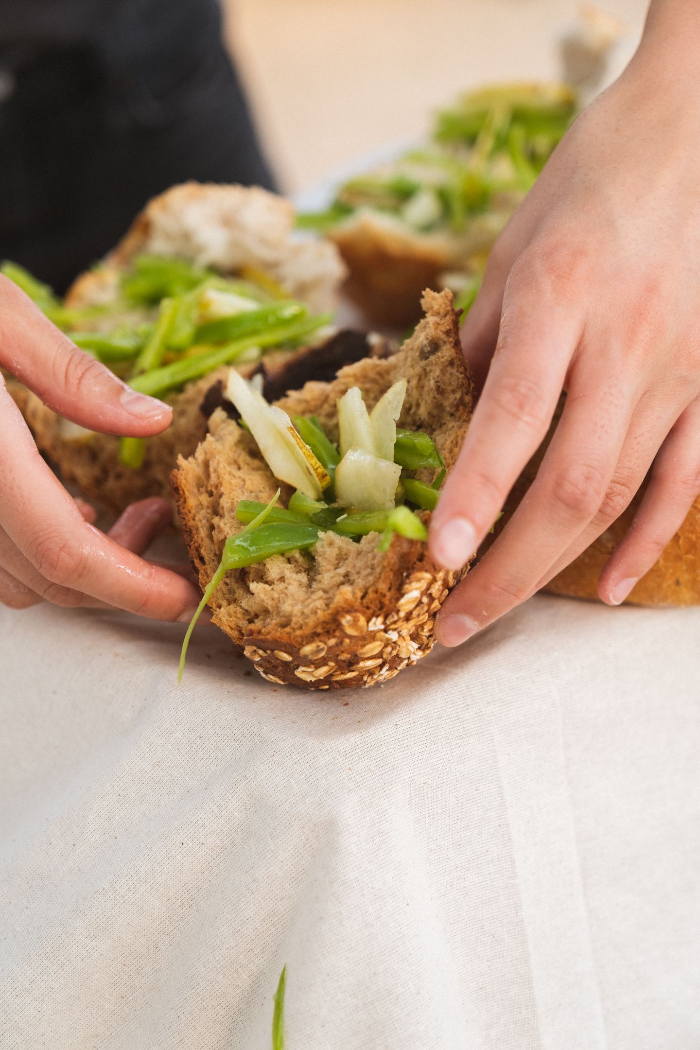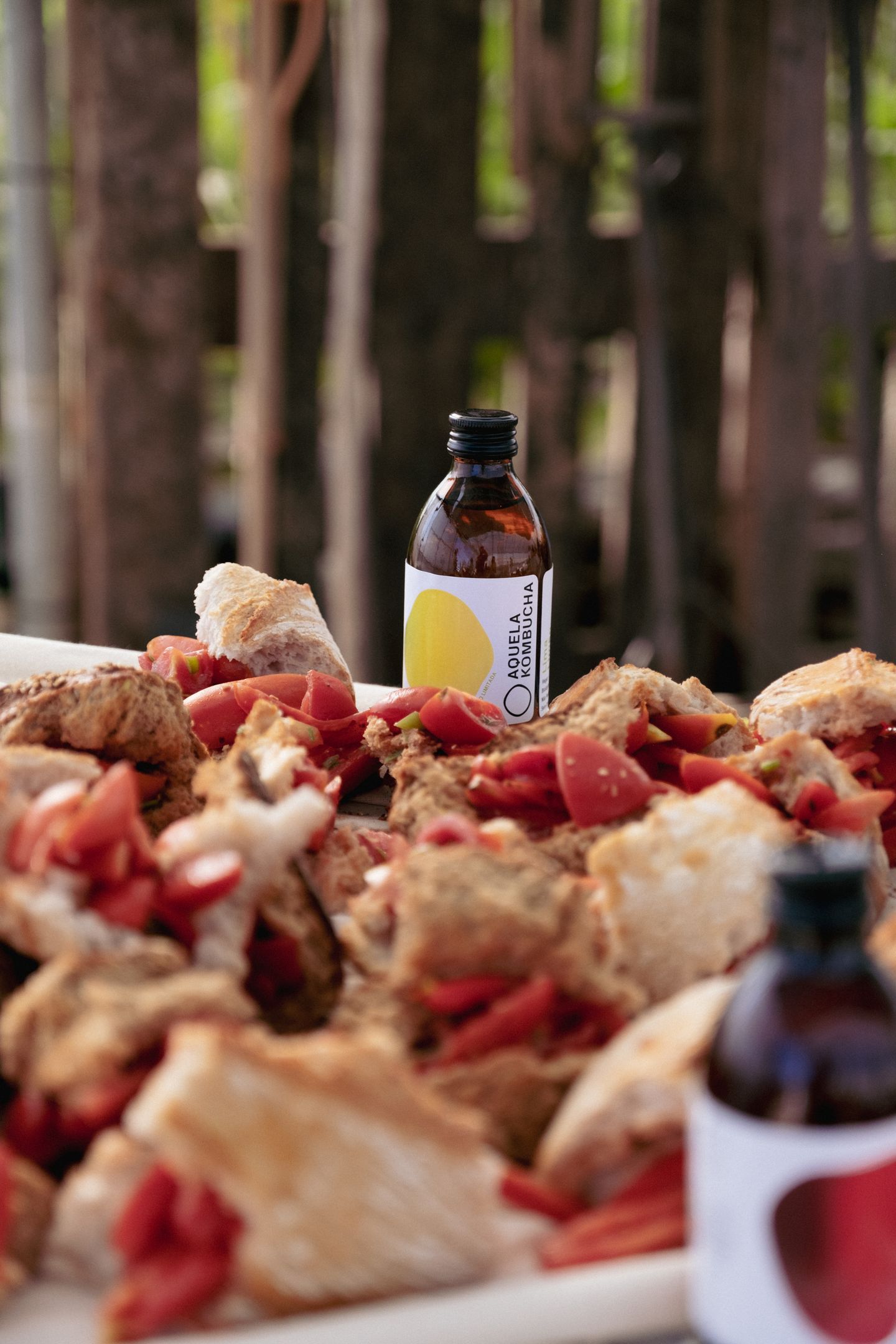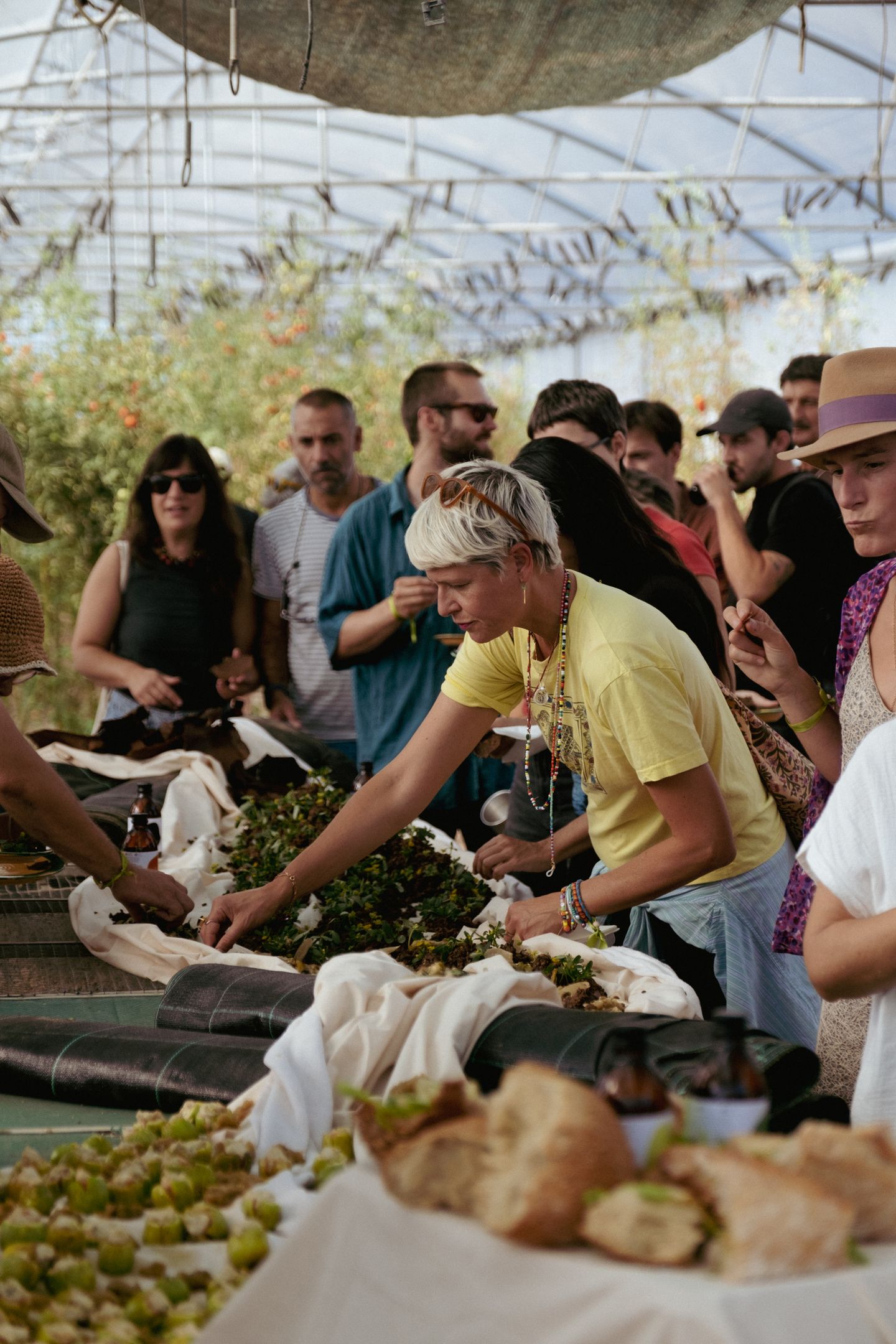 Hosted in the cooperative agricultural society of Freixo do Meio in Montemor-o-Novo (PT) and lead by The Gramounce tutor Barney Pau, Forageable Greenhouse Tablescape is an installation inspired by the landscape around the agroforestry farm. Using local ingredients, like the farm’s own acorn flour, freshly picked figs, foraged fennel and purslane, and greenhouse-grown produce, guests were taken on a culinary journey exploring how the farm interacts with the landscape it sits in. This installation had the collaboration of Aquela Kombucha.