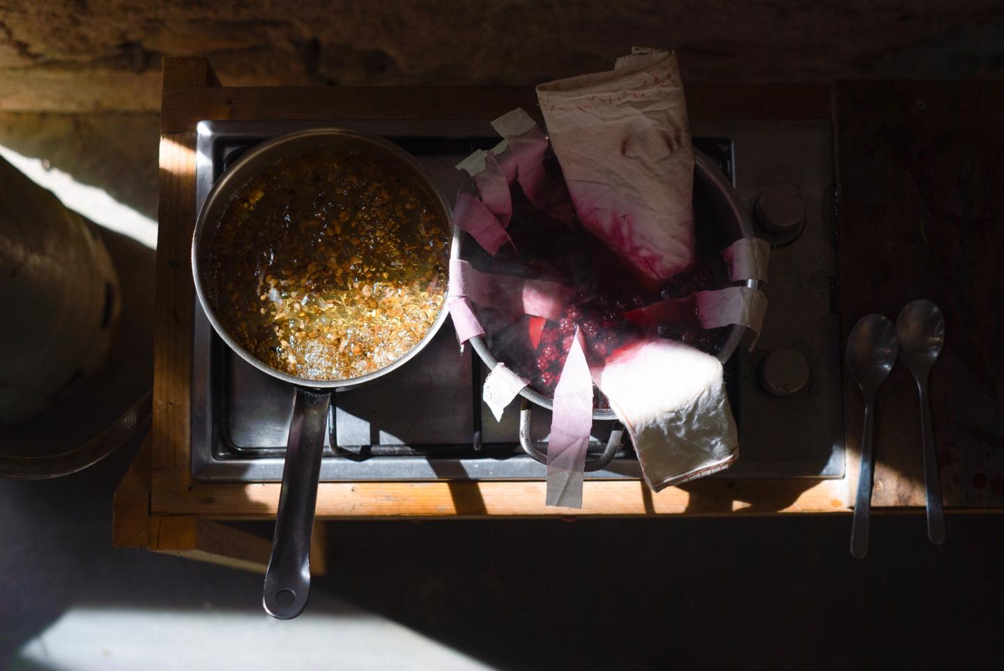 Hosted in Domaine de Boisbuchet and developed by The Gramounce researchers and tutors Inês Coelho da Silva and Kevin Bellò, Landscape Cooking is a workshop exploring practices and ideas of cooking, fermenting, and transforming food in profound attunement with our surroundings. What forms of practical, poetical and spiritual connection can we develop with the surroundings by foraging, eating and digesting food? By blurring the division between the ecosystems we are part of and those that are part of us, we fostered a space of co-creation and mutual support in which artists, chefs and designers researched the edible landscapes we inhabit. Solar-oven cooking, ethical foraging, plant-based dyes with the river, and cooking with embers or on open fire were amongst the various practices and instruments we worked on. Poetically guided by the four elements (air, water, fire and soil), we developed dreamy guided meditations, embodied exercises, lectures, storytelling exercises and bedtime stories.