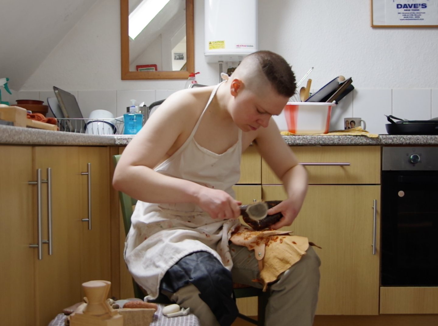 Marf Summers (they/them) is an artist, architect and leatherworker whose work explores themes of trans dyke identity, domesticity and class. They work in mediums ranging from sandpaper to hard candy, creating object work that turns a subversive and eroticising eye on the everyday. Their work often employs butch camp sensibilities to open up playful dialogues with the often fraught terrain of the home. Marf’s work has been exhibited internationally and they are currently part of the Conditions Studio programme in Croydon, London.